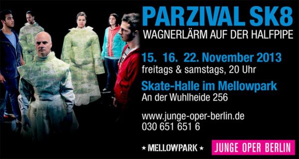 Vom 15.11. bis 22.11. findet in unserer Ping Pong Halle ein Musiktheater statt. Angelehnt an Werke von Eschenbach und Wagner wird das Erwachsenwerden, mit all seinen up and downs, eines Skaters dargestellt. Umgestezt wird das Ganze mit drei Schauspielern, drei Sängern und einem kleinen Orchester. Entstanden ist das Stück aus einer Kooperation der Jungen Oper Berlin und dem Mellowpark.