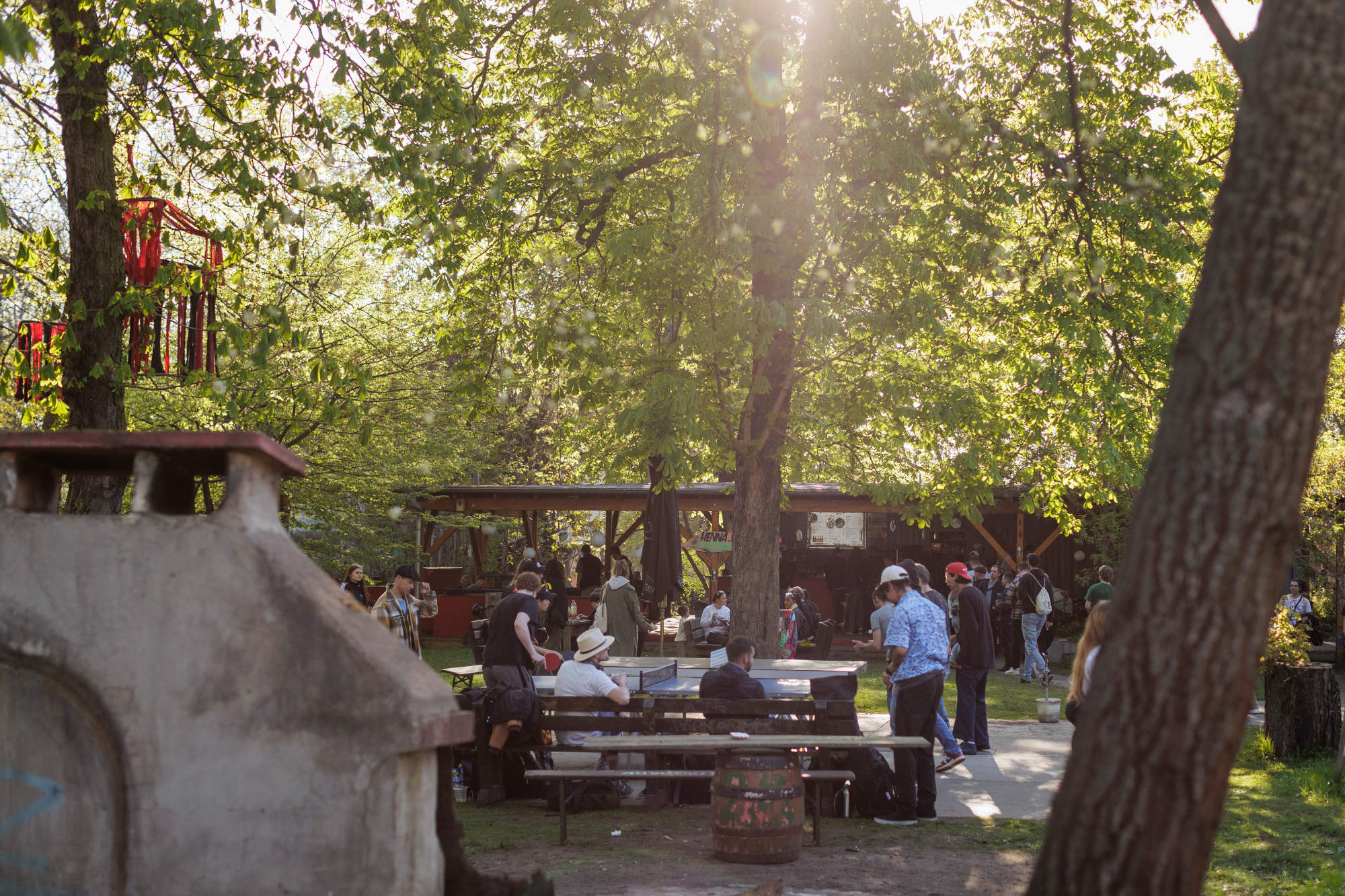 Die Tischtennisplatten sind sehr beliebt. Da muss man schon Glück haben, eine leere Tischtennisplatte vorzufinden.
